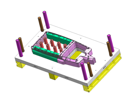 本公司設計的修飾模具,采用了全包圍式的結構設計,通過下模定位,上模沖剪的結構,實現了生產過程的穩定和精度要求;